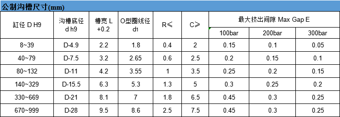 要求活塞桿或活塞密封的場合均可提供-摩擦力小-啟動(dòng)時(shí)不爬行,無粘滯現(xiàn)象-抗磨性及尺寸穩(wěn)定性好-溝槽簡單且尺寸小,具有潤滑腔